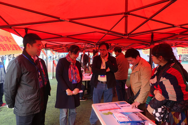 3月26日,2016年广西高校毕业生春季双选会暨桂林理工大学2016届毕业生春季“双选会”在我校屏风校区足球场成功举办。面对更加严峻的就业形势,我院充分利用学校搭建的就业平台,在“双选会”期间,积极组织2016届毕业生参加此次双选会,为学生提供就业岗位。当天上午,学院党委书记熊英、院长韦昌富、副书记王盛,学院副院长王磊、余文成,院长助理魏书精,各教研室负责人、毕业班班主任以及就业辅导员到“双选会”现场指导2016届毕业生就业。学院领导一同看望了我院邀请的11家用人单位和涉及到招聘我院学生的相关单位,深入了解用人单位对我院毕业生的需求情况并针对人才培养模式等方面交换了看法,向招聘单位积极推介我院毕业生。同时,学院领导、专业老师以及辅导员与我院毕业生亲切交流,了解学生的就业定位和现场应聘情况,现场为毕业生答疑解惑,对毕业生现场签约给予指导,为毕业生更好的就业保驾护航。