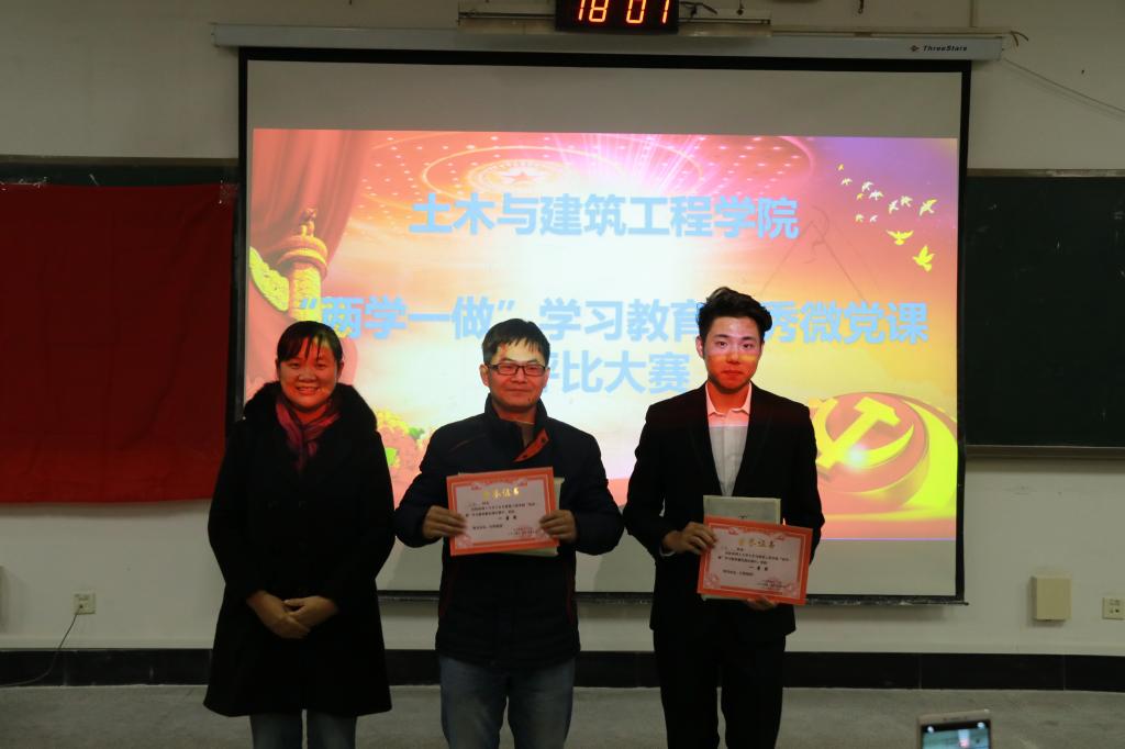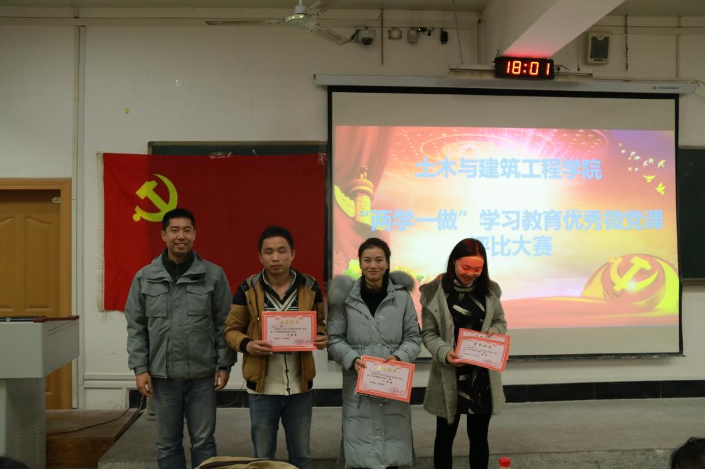 据悉,此次微党课比赛是土木与建筑工程学院关于开展“两学一做”学习教育优秀成果评比活动之一,优秀成果评比还包括“两学一做”学习教育优秀体会文章评比,土建学院优秀党支部评比等活动,进而扎实推进“两学一做”学习教育,检验各支部的学习成果。