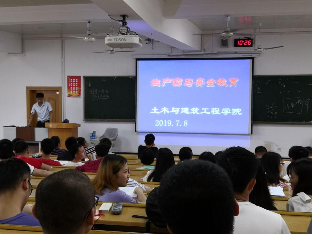 2019年7月8日上午9点30分,为加强校企合作,确保工民建学生生产实习工作安全、有序的进行,工民建教研室在9201召开了2016级本科生安全实习动员大会。工民建教研室全体老师,工民建2016级本科生参加了动员大会。桂林创景建筑设计有限公司作为我院实习基地,其副董事长刘瑜、行政部主任侯华能也应邀参加了会议。