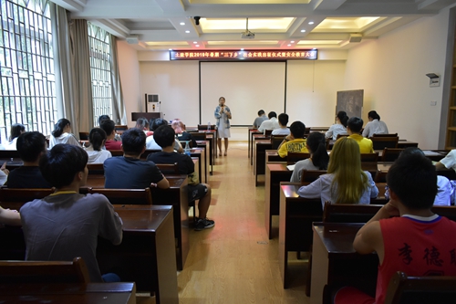 本次社会实践活动共4支队伍,50余名同学,分别奔赴灌阳、兴安、大圩、灵川四个地点进行。大会首先由团委书记姚慧老师致辞,她指出本次暑期“三下乡”社会实践活动的主要目的,着重强调了实践活动中的注意事项和安全问题。同时,希望同学们能在艰苦的环境条件中磨练坚强的意志,发扬“互帮互助”的团队精神,做好充分的前期准备工作。随后,学院党委书记王盛老师做工作部署,主要分为以下三个要点:第一,各团队在走入社会开眼界、长才干的过程中,要尊重当地的风俗人情,应踏实开展调研,真实掌握社会情况;第二,各团队成员应真诚为社会服务,真心地奉献爱心,关注留守儿童,助理乡村教育;第三各团队成员务必注意人身财产安全,服从团队安排,遇到事情及时向带队老师进行反馈。