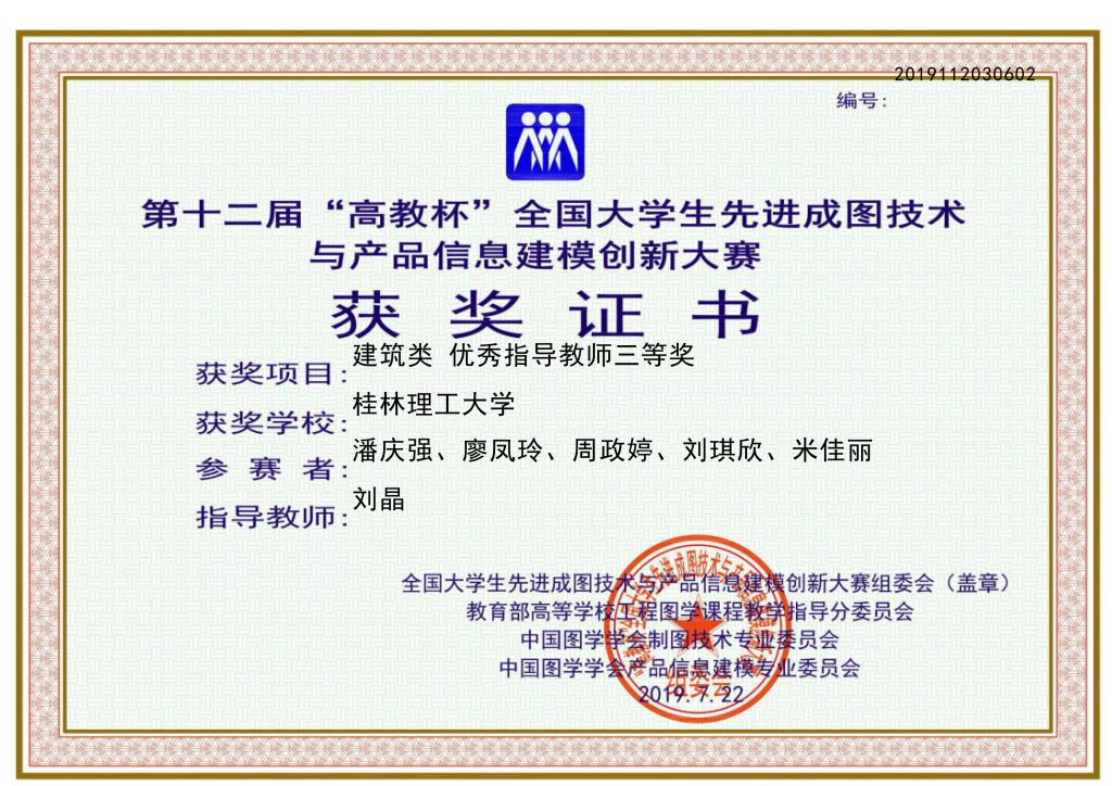 刘晶老师荣获建筑类优秀指导教师三等奖