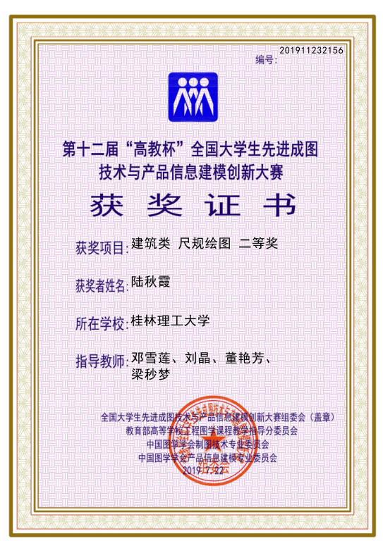 梁秒梦老师荣获建筑类优秀指导教师三等奖