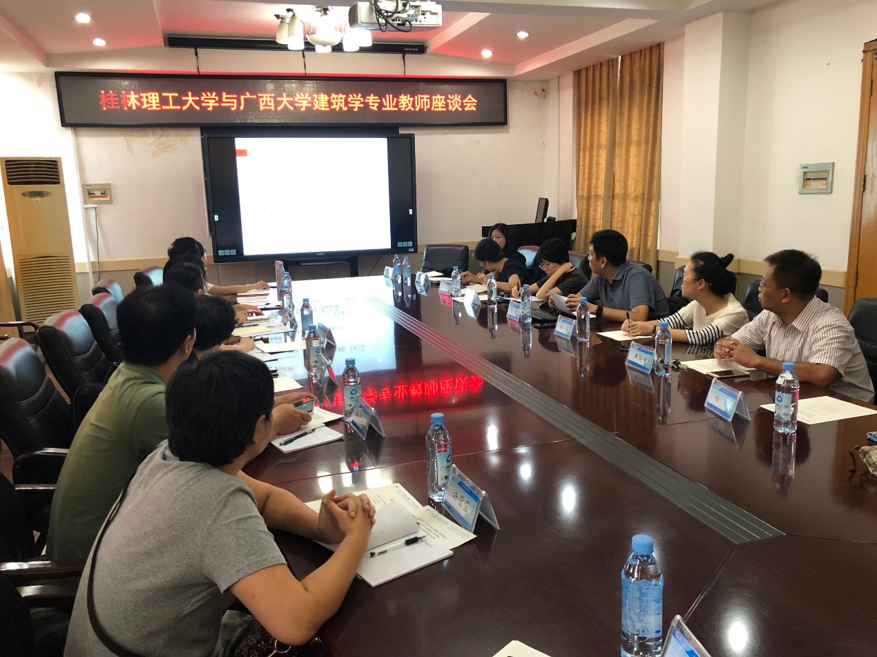 广西大学土木建筑工程学院院长助理、建筑规划系主任吴杰以及系副主任谢小英、韦浥春等多名领导与教师对李季主任一行表示热烈欢迎,并就广西大学建筑学专业的学科建设现状、主要学科方向、师资队伍、教学与科研活动、实验中心等情况进行了详细介绍。李季主任对广西大学的热情接待表示感谢,高级建筑师姚斌介绍了我校建筑学的学科建设情况。座谈期间,双方就科研平台的建设、专业发展动向、“新工科”专业建设思路与细则、本科人才培养方案、BIM与绿色建筑课程设置、设计专业课程改革、教学与科研的结合方式等具体问题进行了深入的讨论,并初步达成了合作意向。