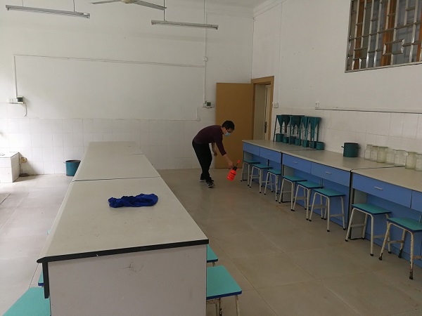 疫情就是命令,防控就是责任。为贯彻落实好学校疫情防控总体部署,落实落细开学准备工作,确保2020年春季学期顺利开学。4月7日下午,我院组织教职员工对学院办公区、学院会议室、实验室、机房、走廊、公共卫生间等区域进行了消杀工作全覆盖。