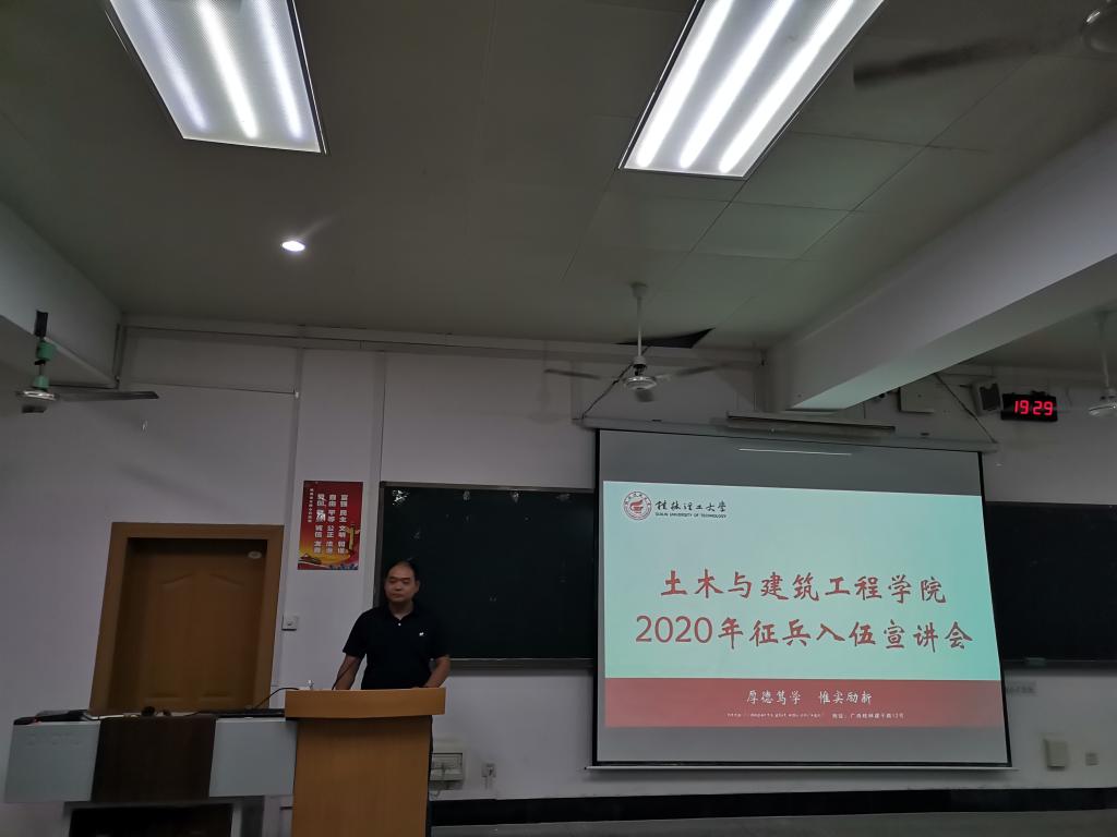 6月4日,为响应国家号召,提高青年学子参军入伍积极性,我院特邀学校武装部副部长黄海在屏风校区9301室进行2020年征兵政策宣讲。学院党委副书记唐丽华主持会议,毕业班辅导员及毕业年级全体男生参加宣讲会。
