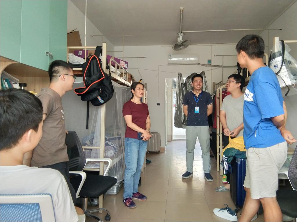 新学期伊始,为了解我院学生返校的生活状况,给同学们创造一个良好的校园生活环境,8月30日下午,我院党政领导班子及各年级辅导员逐一走访了我院全体学生宿舍,慰问返校学生。