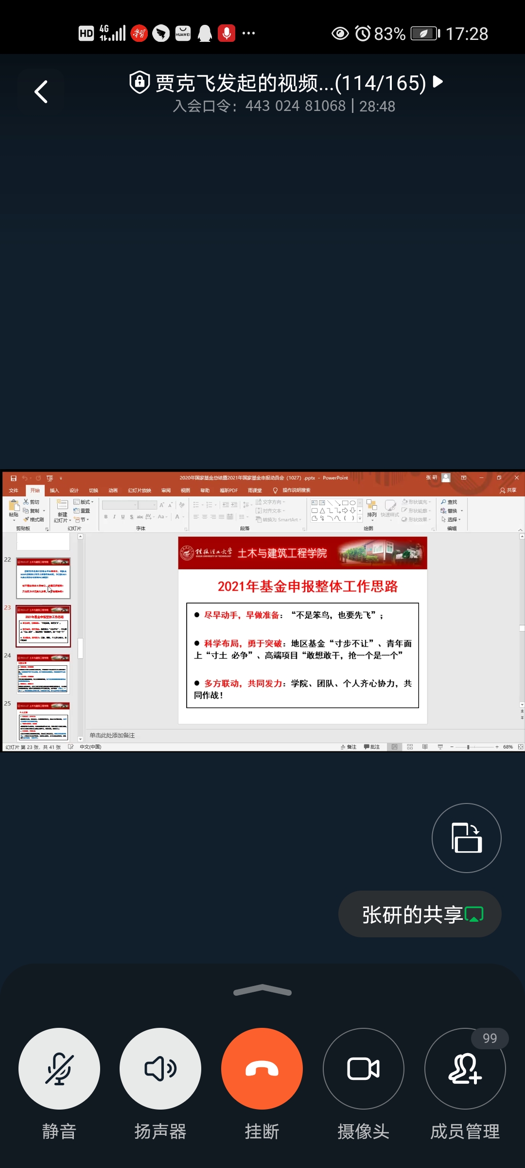 10月27日下午,我院召开了2020年国家基金申报总结暨2021年国家基金申报动员会。在会上,全面分析了2020年度的申报与资助情况,全院共申请国家自然科学基金58项、获批8项,尤其是获批了国家优秀青年基金项目和申报了重大专项等亮点,增强了广大教师的申报积极性和信心。另外,分析了申报工作中存在的选题创新性、研究基础、申请书质量等共性问题,对2021年国家基金申报的计划和目标进行了安排,并提出了“增质保量”的工作思路。