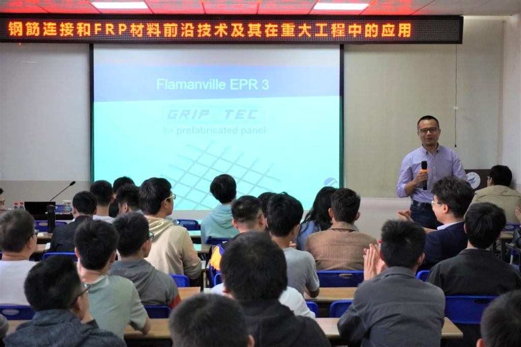 11月13日下午,德士达集团(外企)德士达建材(广东)有限公司中国区钟庆明经理在我院屏风校区4203会议室进行学术交流。本场讲座主题为“钢筋连接和FRP材料前沿技术及其在重大工程中的应用”,由我院副院长张树光老师主持,80余名学生参加此次讲座。
