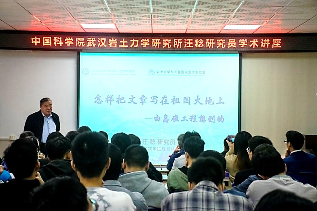 11月16日上午,中国科学院武汉岩土力学研究所汪稔研究员在屏风校区4203会议室,为我院师生开展了主题为“怎样把文章写在祖国大地上”的学术讲座。本次讲座由我院党委书记曾榕书记主持、我院院长助理张研老师及80余名学生参加此次讲座。