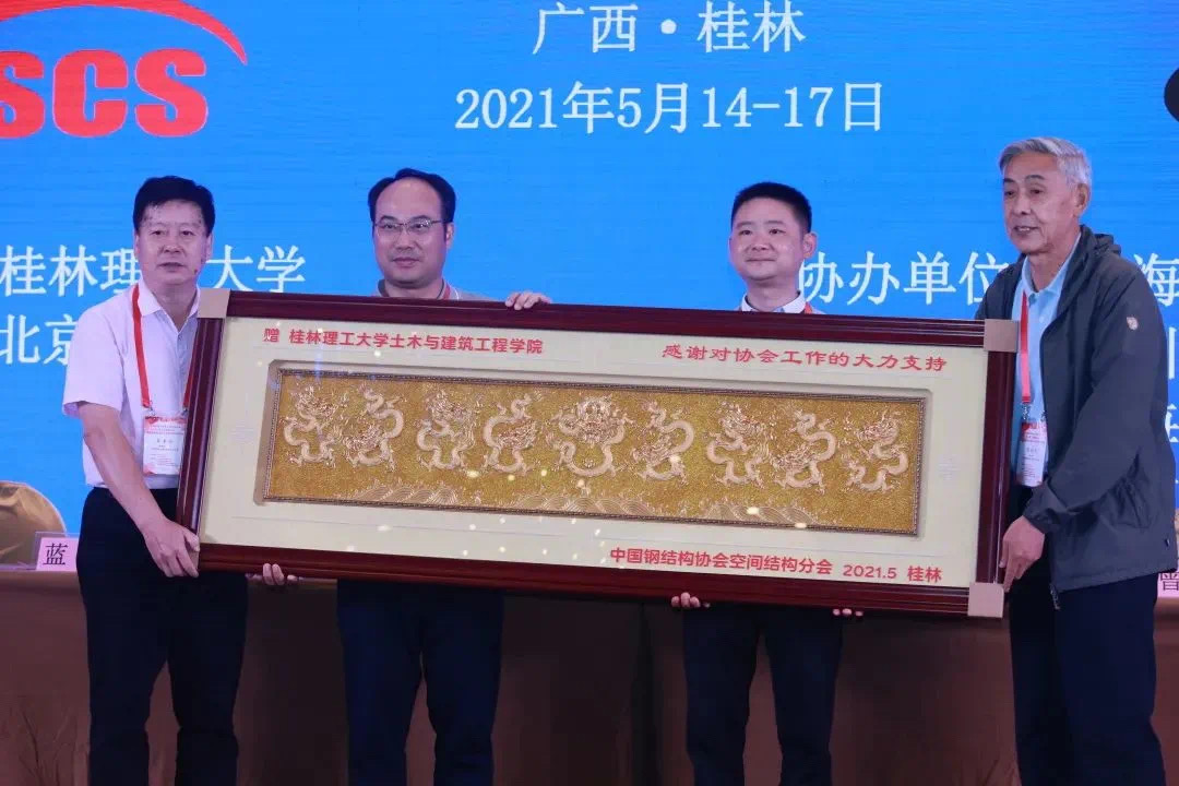 我院在校领导的亲切关怀下,承办工作准备充分、接待热情,受到了与会代表和领导的高度赞扬,表示非常满意和感谢,空间结构分会特意向桂林理工大学土木与建筑工程学院赠予漆线雕牌匾。