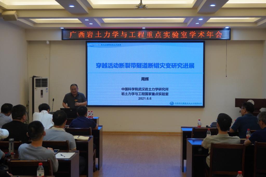 6月6日上午,应广西岩土力学与工程重点实验室、桂林理工大学土木与建筑工程学院邀请,中国科学院武汉岩土力学研究所周辉研究员、张传庆研究员、刘建军研究员、刘磊研究员及东南大学宫凤强教授在屏风校区4204会议室,为我院师生开展了主题为岩土力学的学术报告会。
