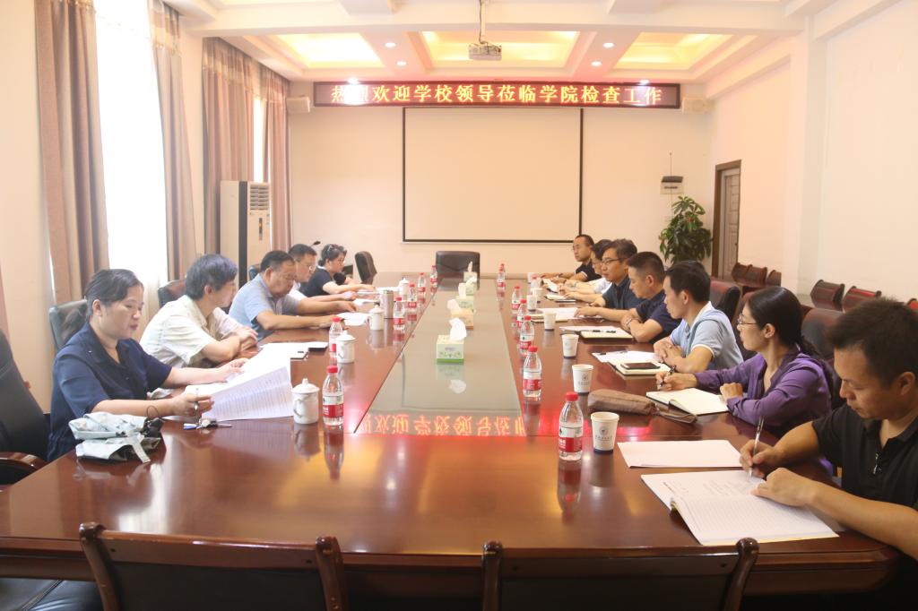 8月31日上午,学校副校长梁福沛在教务处、发规处、科技处领导的陪同下,到我院检查指导新学期开学工作。学院党政领导班子在4222会议室向检查组进行了工作汇报。