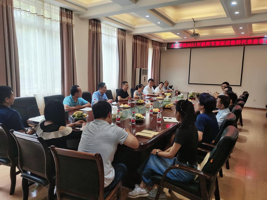 2021年9月8日上午10点,学院召开2021年教师节慰问暨新进教师代表座谈会,学院党委书记曾榕,党委副书记唐丽华,副院长余文成、院长助理张研以及十四位新进教师出席座谈会,会议由曾榕书记主持。