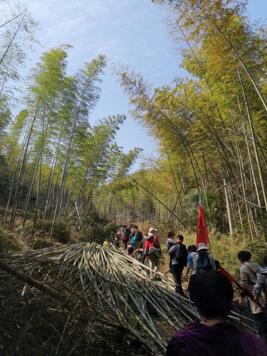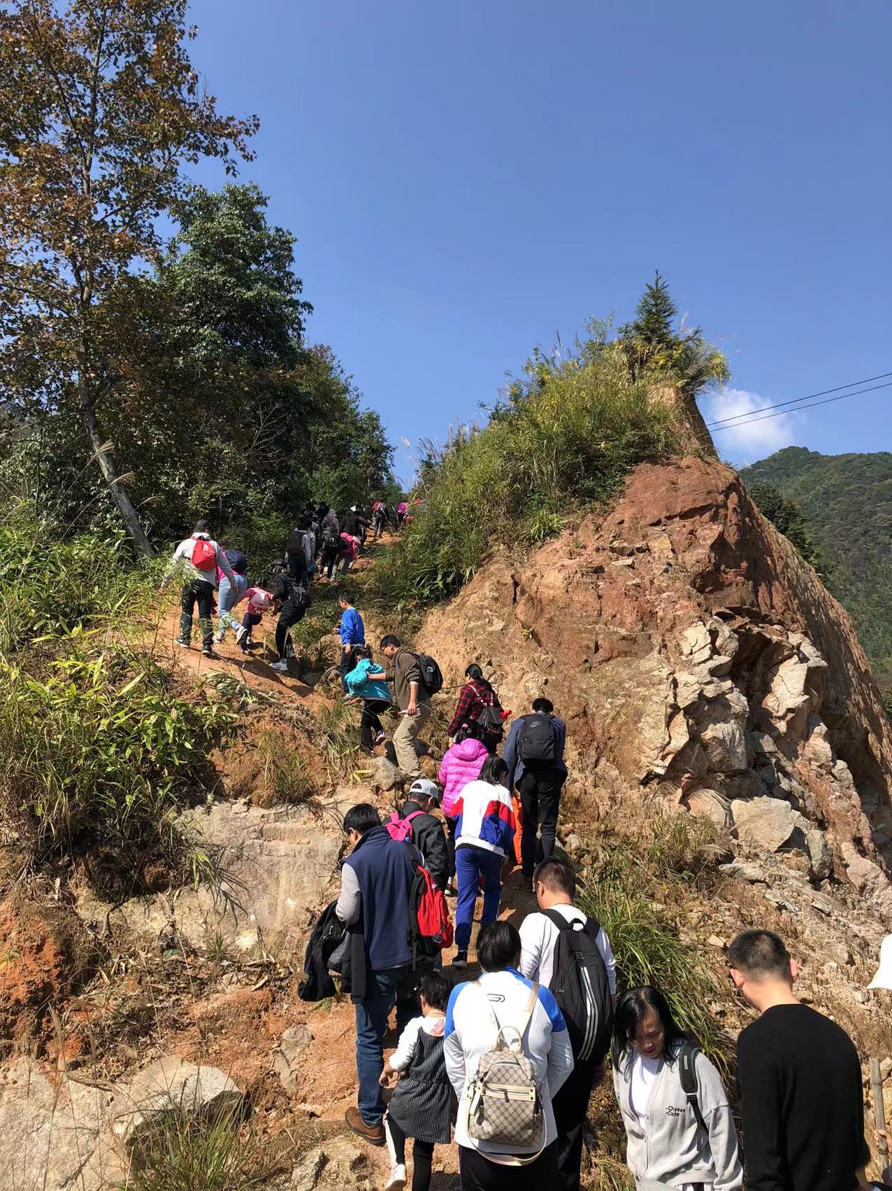 参观完战役遗址后,开始重走红军路—翻越三千界。“满天都是星光,火把也亮了起来。从山脚向上望,只见火把排成许多‘之’字形,一直连到天上,跟星光接起来,分不出是火把还是星星。”这是老一辈革命家陆定一在《老山界》一文中对红军夜行军的描述。老山界是中央红军“长征以来所过的第一座难走的山”。在老山界密林崎岖路上,我们高举着党旗,沿着当年红军的足迹,体验红军长征时翻越老山界的艰辛,山路崎岖,有些地段没有护栏,旁边就是悬崖深谷,老师们保持兴致昂扬的精神状态,脚踏实地地走好每一步路,特别是孩子们,在领队的带领下,冲锋在前,坚持不懈地翻过了三千界,走完了长征路。
