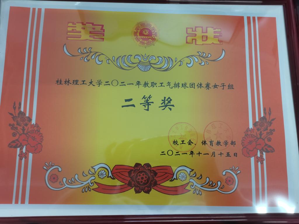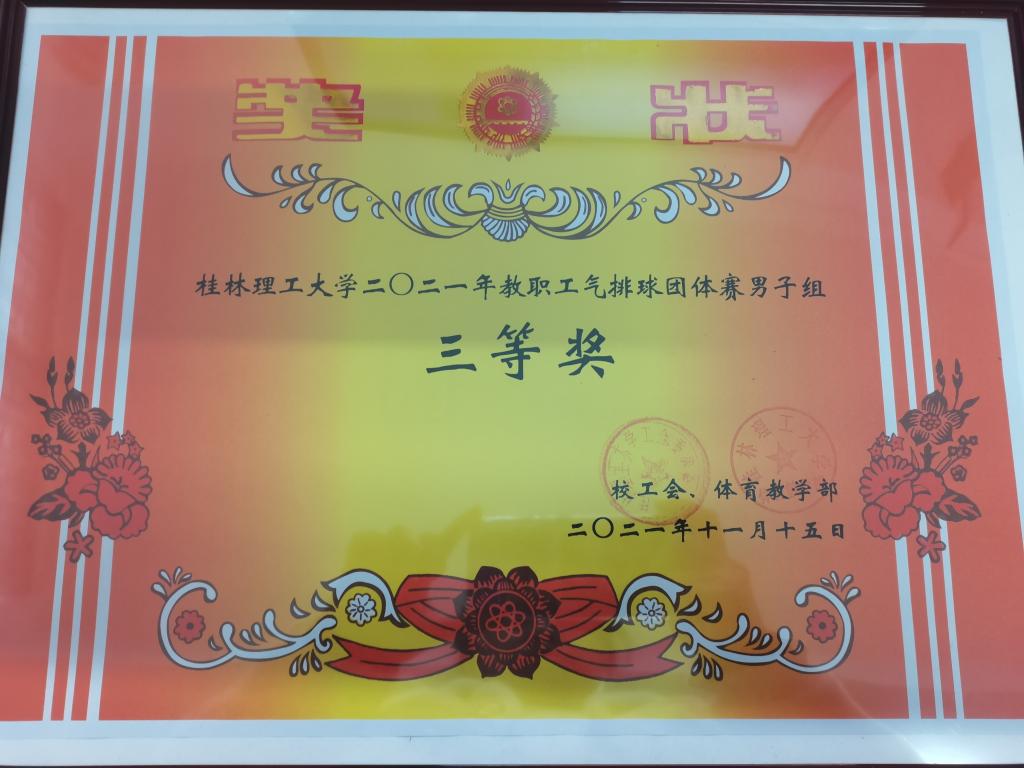 11月15日晚,桂林理工大学2021年教职工气排球赛在屏风校区体育馆三楼圆满落幕。土建学院代表队经过团结一致,奋力拼搏,最终取得女子二等奖,男子三等奖的好成绩。