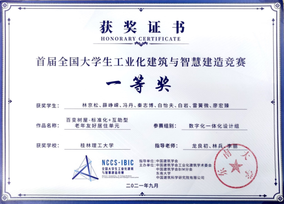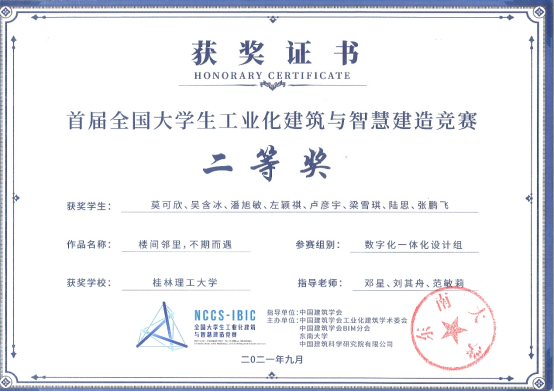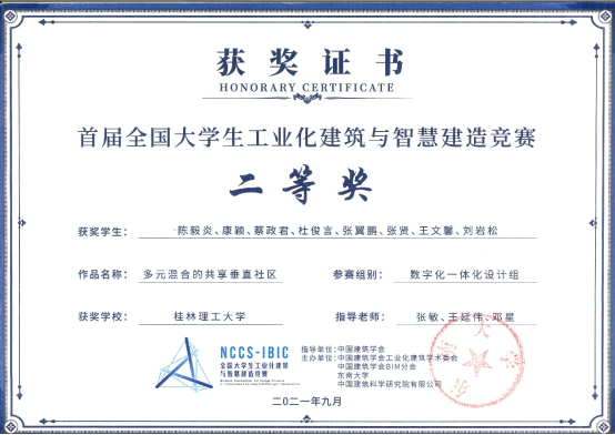 2021年9月11日,首届全国大学生工业化建筑与智慧建造竞赛圆满落下帷幕,“全国大学生工业化建筑与智慧建造竞赛”由东南大学、中国建筑科学研究院有限公司倡导并牵头发起。竞赛由中国建筑学会担任指导单位,中国建筑学会工业化建筑学术委员会、中国建筑学会BIM分会、东南大学和中国建筑科学研究院有限公司联合主办。本届竞赛共决逐并最终产生一等奖15项、二等奖39项、三等奖86项。此外,11所高校获得本届竞赛的优秀组织奖。