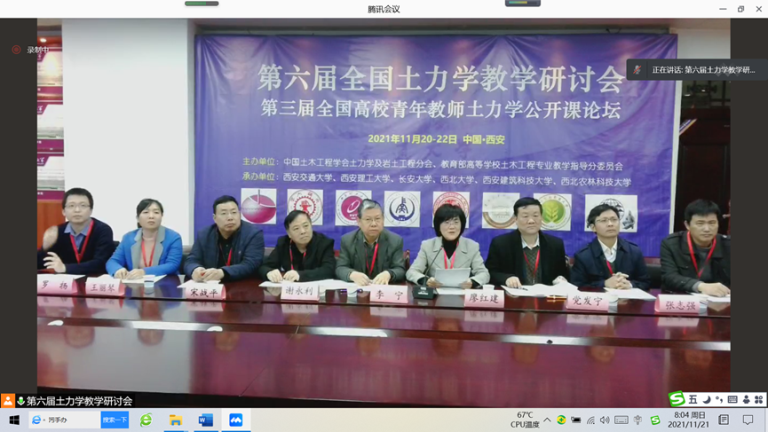 2021年11月20-22日,由中国土木工程学会土力学及岩土工程分会和教育部高等学校土木工程专业教学指导分委员会主办,西安交通大学和长安大学等单位承办的第六届全国土力学教学研讨会暨第三届全国高校青年教师土力学公开课论坛在腾讯会议平台(线上)举行。