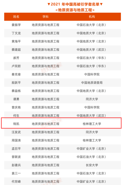2022年4月14日,爱思唯尔(Elsevier) 重磅发布2021“中国高被引学者” (Highly Cited Chinese Researchers)榜单,我院钱凯教授上榜 (桂林理工大学仅2人)。