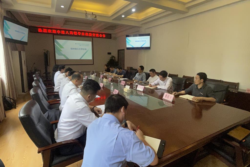 2022年5月18日上午,中国建筑第八工程局广西分公司总工程师程海林携副总工程师陆仕颖等一行5人来我院交流座谈。我院党委书记曾榕、院长钱凯及相关负责人出席座谈会。