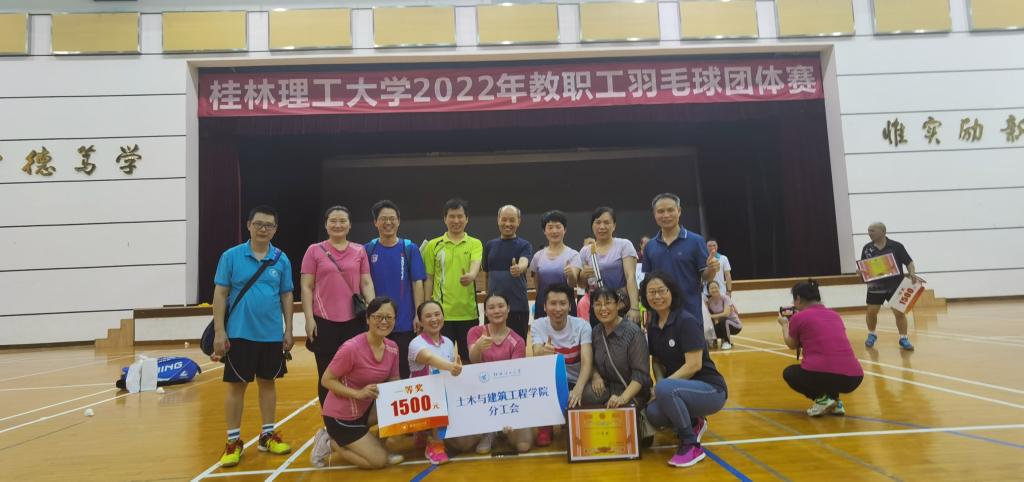 桂林理工大学2022年教职工羽毛球团体赛于5月16日-30日在屏风校区体育馆三楼举行。我院羽毛球代表队发扬团结一致、奋力拼搏的精神,经过努力再次荣获团体一等奖的好成绩。