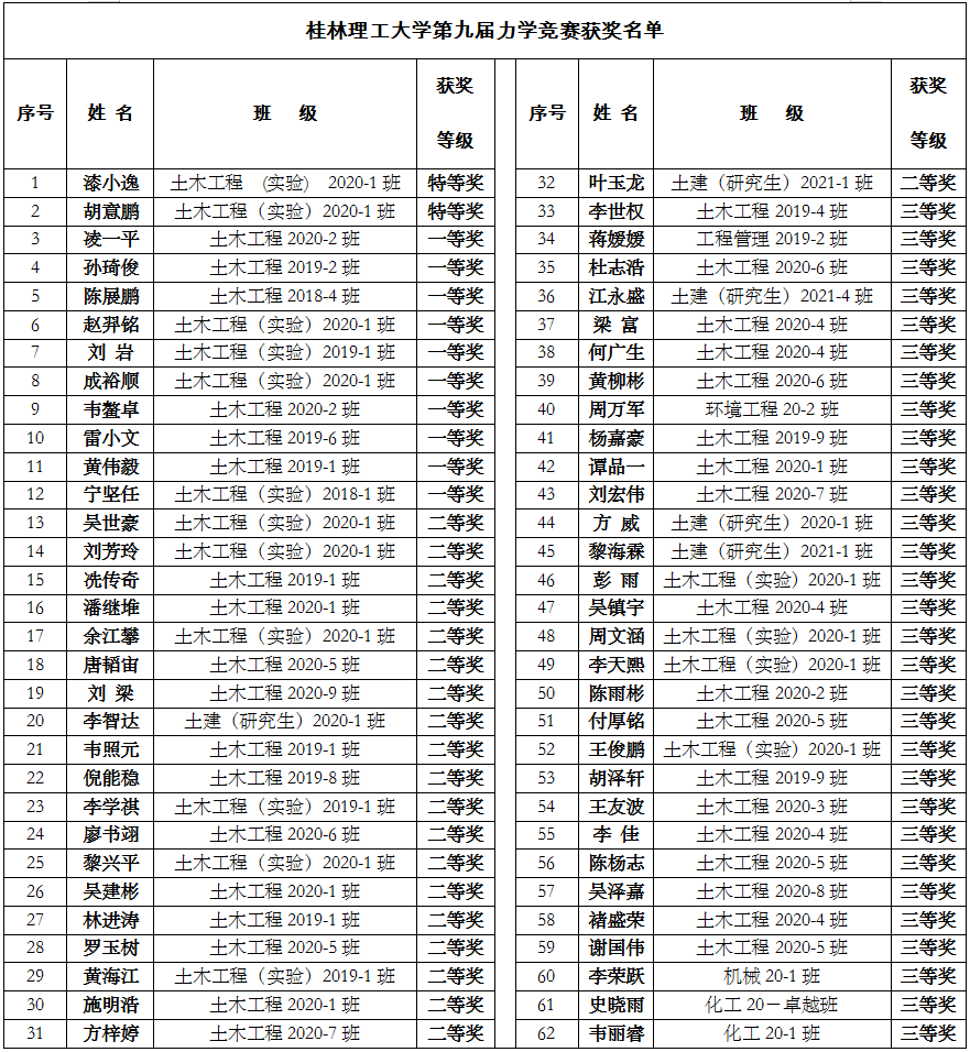 经多方筹备,桂林理工大学第九届力学竞赛于2022年6月12日顺利举行。共有来自土木建筑与工程学院、机械与控制工程学院、环境科学与工程学院、地球科学学院以及化学与生物工程学院等多个学院的近四百名本科生、研究生报名参赛。