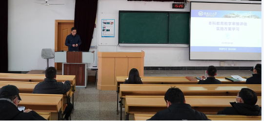 为推进我院本科教育教学审核评估工作进度,确保审核评估重点工作稳步、扎实推进,2月24日下午,我院在教九楼9101教室召开本科教学审核评估工作推进会议,全院教职工参会。会上,余文成副院长作了《本科教育教学审核评估方案学习》讲话,并对下一步工作提出具体要求。