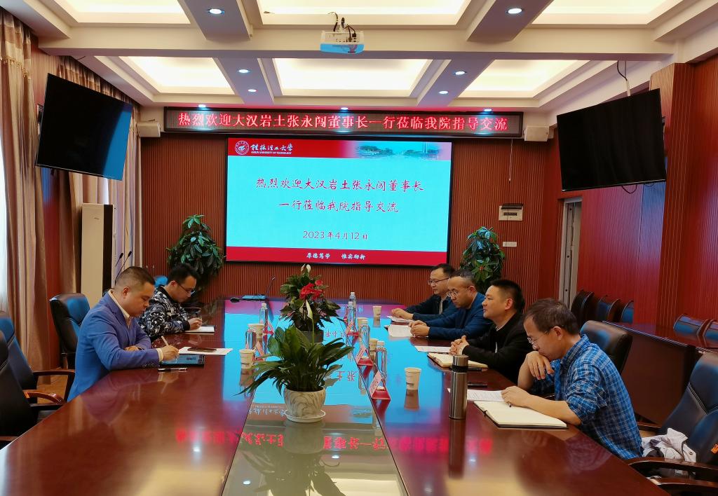会上,曾书记代表土建学院党政对张董事长一行表示热烈的欢迎,高度评价了大汉岩土在相关领域取得的成绩,介绍了我院近年来在教学、科研和成果转化等方面取得的成果和发展规划,希望双方今后在产学研领域深入合作,共结硕果。