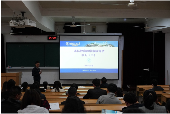 为了做好迎接本科教育教学审核评估准备工作, 2023年4月28日下午,我院在屏风校区教九楼9101教室再次召开审核评估专题学习会议,做了题为《加强学习,准确把握评估方案 做好准备,迎接线上线下评估》动员,学院党政领导及全体教师参加了此次会议。