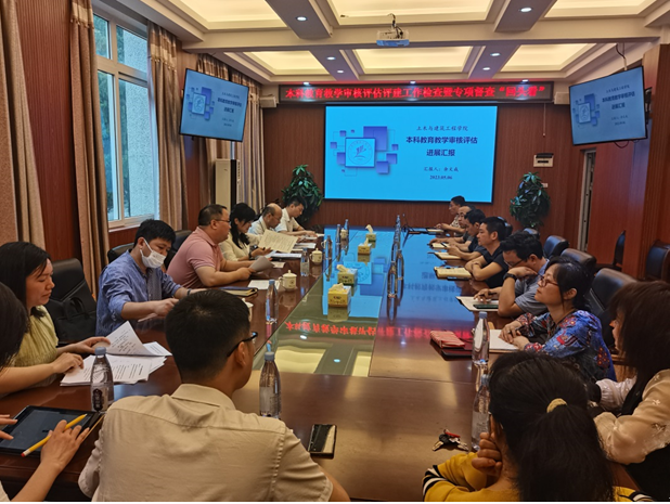 5月6日上午,学校党委常委、统战部部长、机关党委书记邱杰教授带领评建工作联合检查组一行5人来我院检查本科教学审核评估评建材料准备情况,学院余文成副院长在屏风校区教四楼4224会议室向检查组汇报了我院审核评估工作情况,我院党政领导及各部门负责人参加了会议。