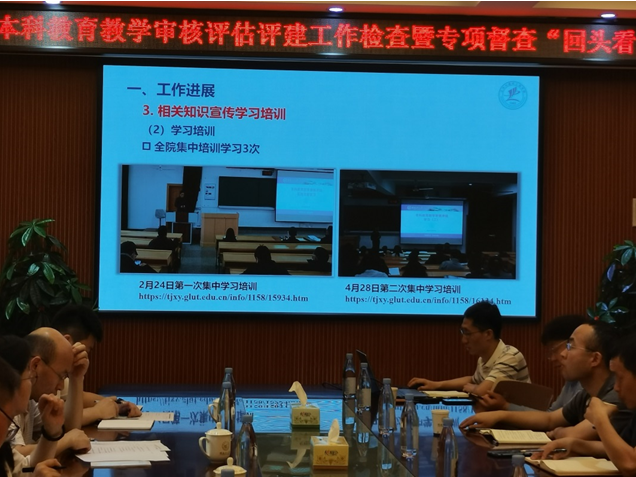 此次专项督查“回头看”工作中,检查组听取了我院在本科教学审核评估工作中14个方面的推进落实情况,重点检查了我院评建工作中组织机构领导情况、学习评估手册和动员情况、“磨课”工作开展情况、整改补建方案制定情况、支撑材料完善和收集归档情况等,走访了学院教学档案室,随机抽查部分存档材料,对材料提交和保管工作进行查证问询。