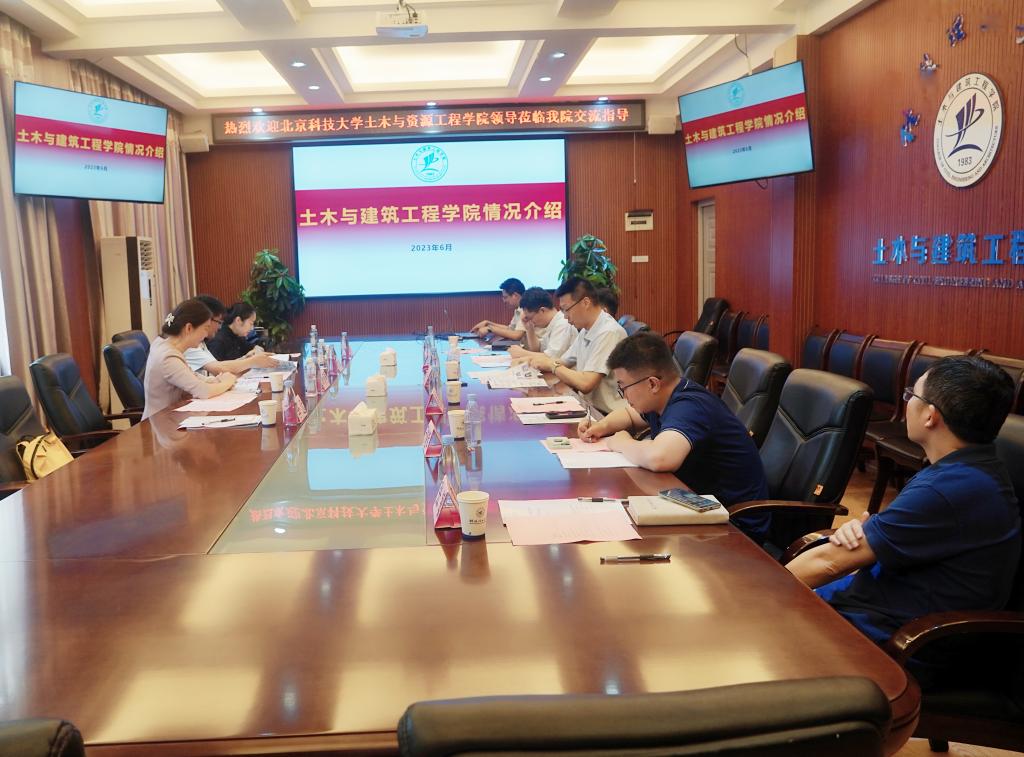 潘旦光助理对耿倩男书记一行表示热烈欢迎,并从办学历史、学科结构、办学规模、专业特色、办学成就、办学目标等方面对学校基本情况作了介绍。钱凯院长围绕我院历史、学科发展等方面简要介绍了学院情况。耿倩男书记介绍了北京科技大学土木与资源工程学院的基本情况,他希望此次交流能增进彼此之间的密切往来,在学科发展、专业建设、人才培养等方面不断深化合作,推动双方学院事业共同发展。