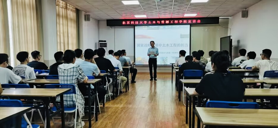 宣讲会上,李远主任向学生详细介绍了土木工程专业近年来的发展、北京科技大学土木与资源工程学院参与的重要项目成果,以及学院师资、教学资源优势等方面,针对硕士招生情况为学生进行了详细解答,并鼓励我院学生积极报考。学生会上认真听取,会后积极提问,切实提升了我院学生的考研动力,达到了良好的宣传效果。