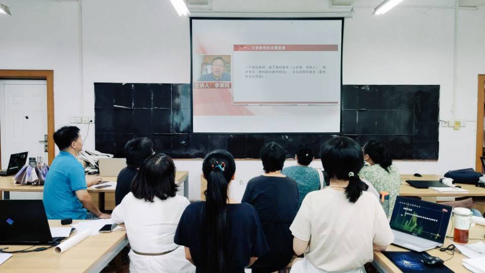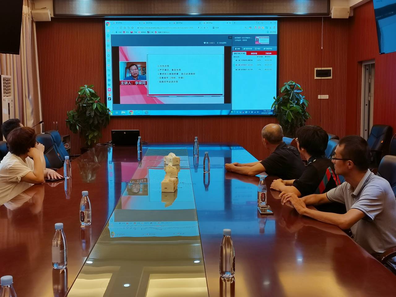 根据学校党委教师工作部《关于开展学校师德大讲堂(2023年第1期)活动的通知》要求,2023年7月7日,我院各部门负责人组织部门所属教师在屏风校区教四楼、教五楼的工作室集中学习东华理工大学化学生物与材料科学学院李荣同教授题为《如何做好一名大学教师—我做教师的几点感悟》网络视频。