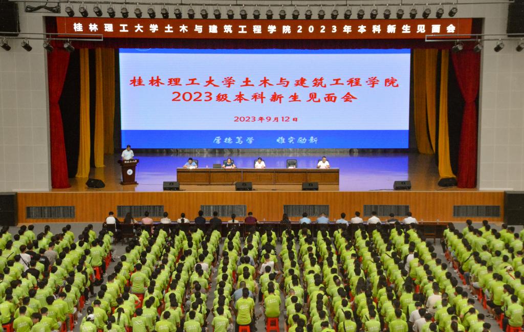 9月12日下午,桂林理工大学土木与建筑工程学院2023级本科新生见面会在雁山校区新体育馆隆重举行。土木与建筑工程学院党委书记曾榕,党委副书记、院长钱凯,党委副书记唐丽华,院长助理张研,2023级班主任,全体辅导员,2023级班助及全体2023级新生参加了此次会议。会议由学院党委副书记唐丽华主持。