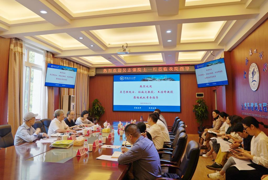 2023年10月7日,中国高等学校城乡规划专业教学指导分委员会主任委员、中国工程院院士、同济大学原副校长吴志强院士、同济大学孙施文教授和深圳大学王浩锋教授莅临我校,考察了由我校土木与建筑工程学院承办的2023中国高等学校城乡规划教育年会的筹备情况。吴院士一行先后与我校领导、学院领导及年会筹备人员进行了深入交流,并召开了筹备情况座谈会,座谈会由学院党委书记曾榕主持,钱凯院长介绍了学院发展情况,城乡规划教研室主任孙昌盛老师向吴院士一行汇报了年会筹备工作情况。吴志强院士充分肯定了学院年会筹备工作的成效和付出,并对下一步筹备工作提出了具体指导意见。同时,吴志强院士也对学院未来发展提出了宝贵建议。