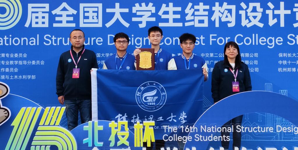 10月25日,第十六届全国大学生结构设计总决赛在长沙理工大学盛大举行,本届比赛由全国581所高校、1465支参赛队伍选拔产生清华大学、同济大学、哈尔滨工业大学、上海交通大学等118所高校119支精英队参加总决赛,参赛规模为历届之最。由我校土木与建筑工程学院张研、李丽两位老师指导的飞虹队,队长何威承,队员梁振喆、钟梦成代表广西区参加本次比赛,经过为期5天的激烈角逐斩获一等奖,结构模型成绩位列全国第24名,在广西参赛队中排名第一,也是广西参赛队唯一获一等奖的队伍。这也是我校自参加本项赛事以来的又一大突破。