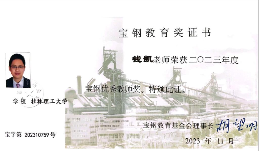 11月18日,按照《宝钢教育基金会章程》和《宝钢教育奖评颁实施细则》,本着公开、公平、公正的原则,宝钢教育基金会2023年度工作会议暨宝钢教育奖颁奖仪式在上海举行。我院钱凯院长荣获2023年度宝钢优秀教师奖,同期获宝钢优秀教师奖的有271名国内优秀教师。