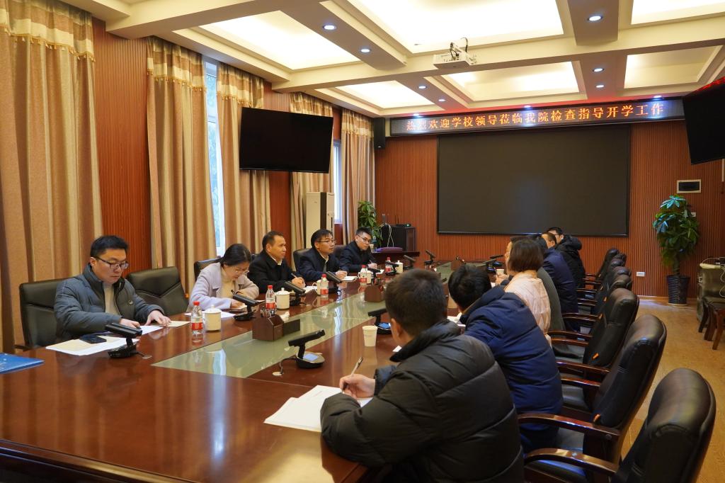 3月6日上午,学校副校长周国清在研究生院、科学研究院、校办及教务处等部门领导的陪同下,到我院检查指导新学期开学工作。学院领导在4222会议室向检查组进行了工作汇报。