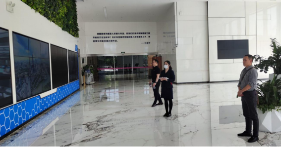 首先,虞爱平一行在大堂展厅听取了机器人有限公司发展历程、业务布局、创新合作、业务板块等情况的报告讲解。随后,由博智林机器人有限公司基础研究院副院长李亮引导实地参观了辅助类机器人、混凝土施工类机器人、混凝土修整类机器人、二次结构类机器人等各类博智林机器人的研发过程和功能讲解。