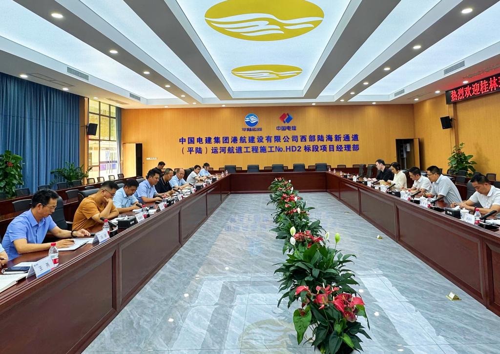 2024年5月22日,桂林理工大学土木工程学院党委书记曾榕、院长钱凯一行6人赴中国电建集团港航建设有限公司平陆运河航道工程2标段项目部开展共建交流。