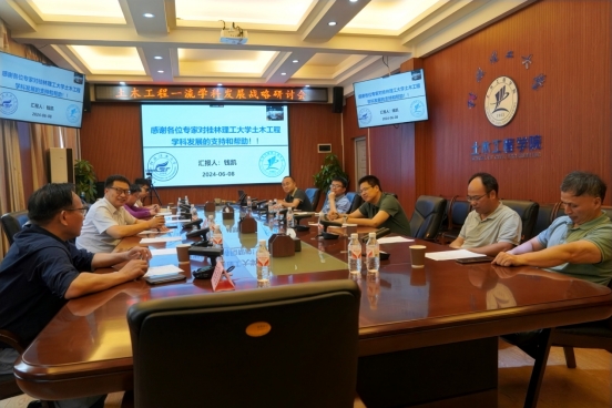 2024年6月8日,我院在4222召开了土木工程一流学科发展战略研讨会。研讨会专门邀请了安徽建筑大学蔡国军副校长(线上)、武汉大学/华中科技大学郑俊杰教授(长江学者)、中科院武汉岩土所韦昌富研究院(中科院百人、广西八桂学者)作为校外专家进行指导。我院党委书记曾榕、院长钱凯教授、副院长张研教授、副院长于晓辉教授,我院学术委员会委员:朱万旭教授、刘之葵教授,以及我院学位评定委员会委员:谭波教授、刘其舟教授、王志兵教授、王蕾老师等作为校内专家参与研讨。