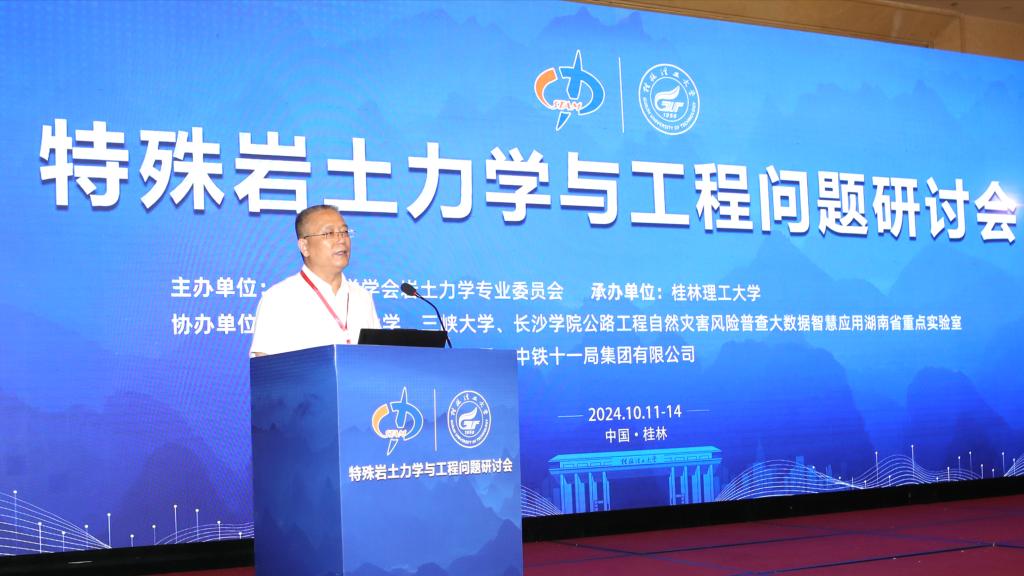 王敦球在致辞中对与会专家学者莅临本次会议表示热烈的欢迎和衷心的感谢,期望与会专家学者积极交流,聚焦特殊岩土力学与工程问题,深入交流探讨该领域科学研究和工程应用的最新成果和进展,对于拓宽研究视野,激发创新思维,促进学术交流,推动该领域相关理论和实践的发展,具有重要促进作用。