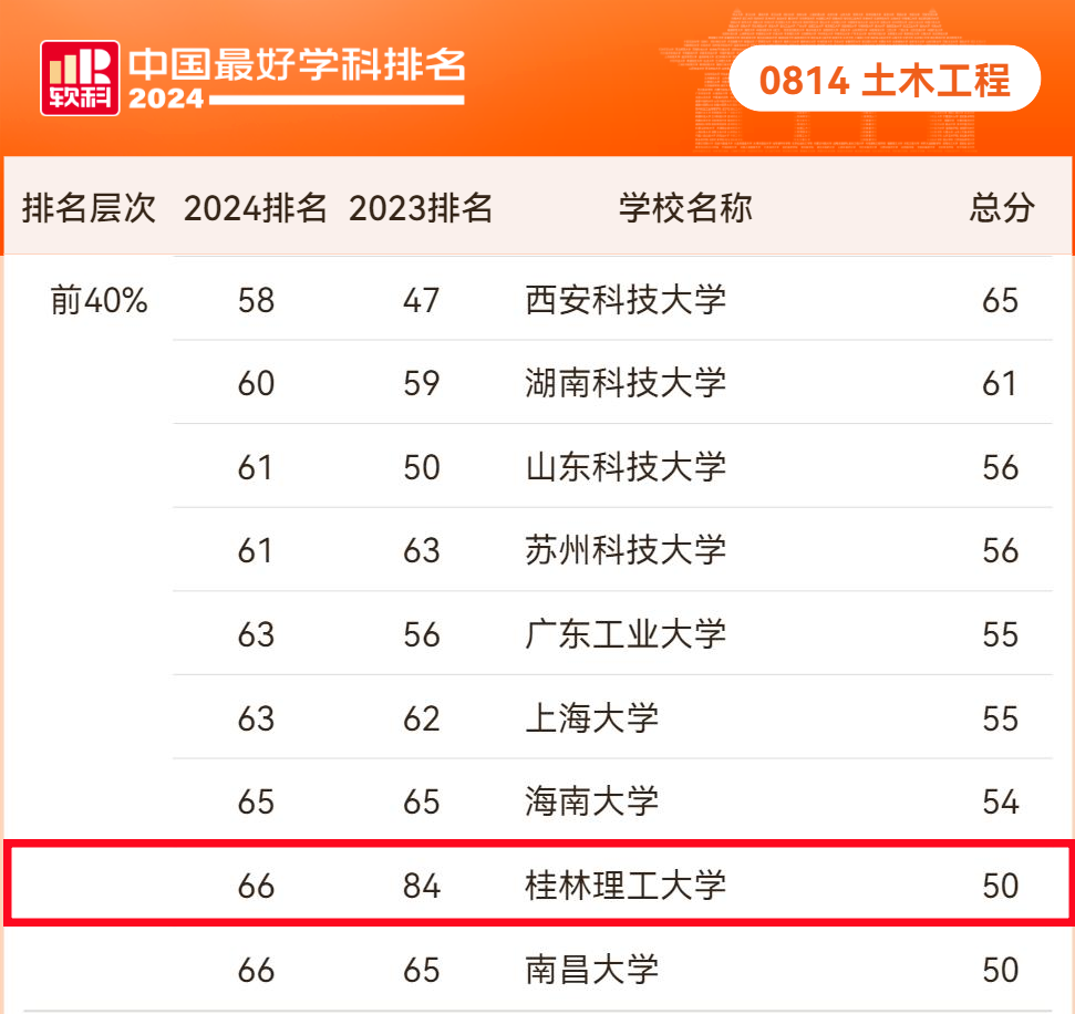 土木工程学科首次入选2024软科最好学科前40%