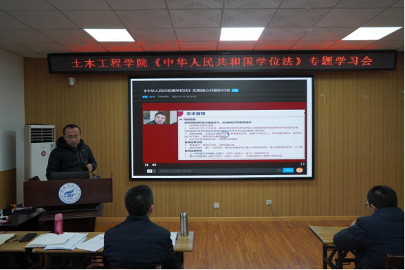 土木工程学院高度重视学位法研讨会专题学习,积极响应并组织教职工深入学习并观看此次会议的直播。学院各单位和老师纷纷表示,将认真组织学习活动,深入领会学位法的精神实质和核心要求,并结合自身工作实际,将学位法的各项规定贯彻落实到日常的研究生教育和学位管理工作中,不断提高学位授予质量和研究生培养水平,为学院的学位与研究生教育事业发展提供坚实的保障。