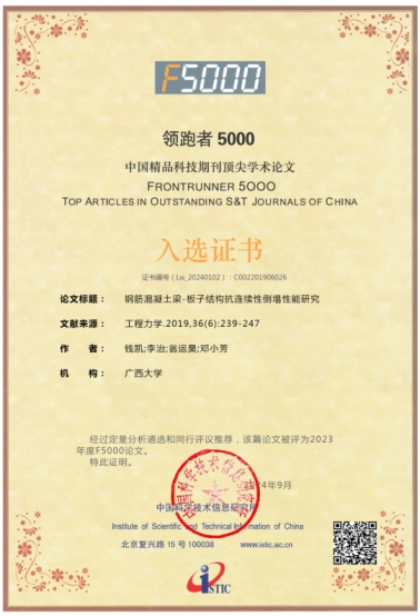 近日,国家科技部中国科学技术信息研究所(中信所)发布了2024年“领跑者5000——中国精品科技期刊顶尖学术论文(F5000)”入选论文名单。F5000的评选过程非常严格,采用定量分析和同行评议相结合的方式。评选标准包括:论文必须发表在中国精品科技期刊上,并且是各学科被引次数排名前1%的论文。每种精品期刊从5年间发表的论文中择优选取不超过20篇作为提名论文,再经过进一步遴选才能成为F5000论文。