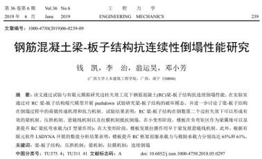 论文标题:钢筋混凝土梁-板子结构抗连续性倒塌性能研究