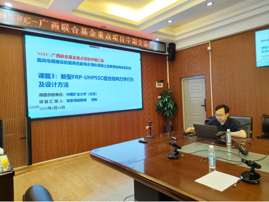 国家自然科学基金-广西联合基金重点项目——“面向岛礁建设的超高性能海水海砂混凝土及新型结构体系研发”中期交流会于2025年6月16日在桂林理工大学土木工程学院召开。本次交流会旨在系统总结项目当前研究进展,深入研讨关键技术问题,部署后续工作计划,以期高效完成项目目标。