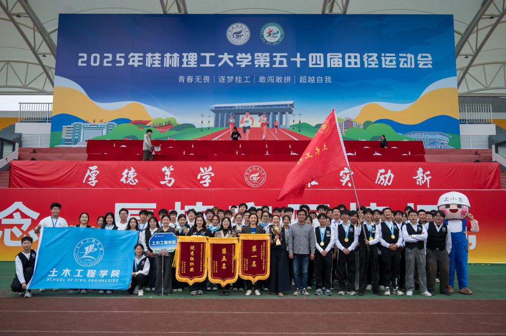 10月30日至31日,桂林理工大学第54届田径运动会在雁山校区隆重举行。我院由全体领导班子成员亲自带队,组织170余名师生运动员组成的代表团,踊跃参与了各项赛事角逐。本届运动会中,师生运动员以顽强拼搏的精神斩获佳绩,学院荣获本届校运会优秀组织奖、团体总分第一名、男子甲组团体总分第一名、“桂工杯”男子篮球赛第三名的好成绩。
