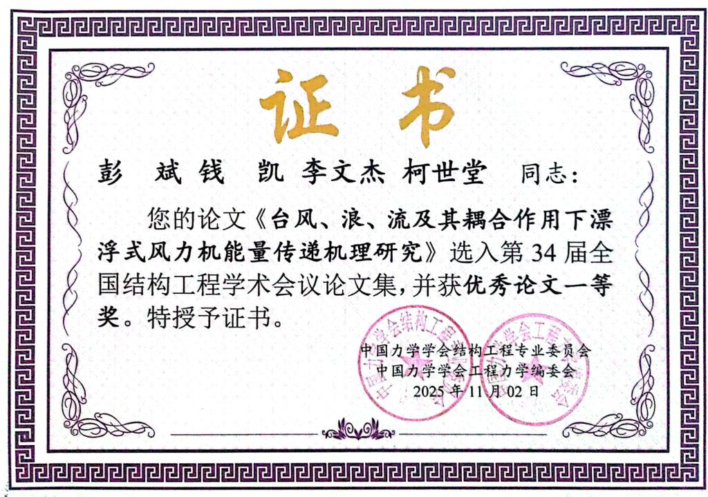 此次会议不仅是高端学术交流的平台,更是我院学科建设成果的一次集中检阅。闭幕式上,我院硕士研究生彭斌荣获优秀论文一等奖并作为代表登台发言。他在感言中特别感谢了学院在科研氛围营造和条件保障上的长期投入与悉心指导,充分展现了我院的育人成效。这一荣誉,是学院在结构工程领域人才培养质量与科研创新实力的有力佐证,赢得了与会专家学者的高度评价。