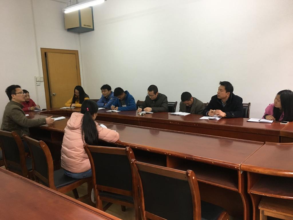 首先,邓老师动员大家积极报名参加校公开课和申报学生年度竞赛计划;根据学院相关会议精神,认真组织申报2017年学校大学生创新创业训练计划项目,鼓励学生积极参加;其次,根据毕业设计相关要求,认真做好学生毕业设计指导工作;最后,教研室全体老师对教研室的教学、科研等工作做了深入的探讨与交流。